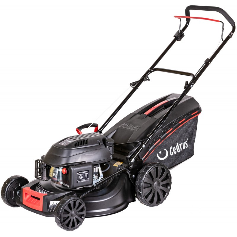 Kosiarka spalinowa Cedrus KS48 wyposażona została w silnik o mocy 2,6kW przy 2800obr/min i pojemności skokowej 139cm³. Posiada ona układ roboczy o szerokości 48cm, duże, łożyskowane koła ułatwiające manewrowanie, centralną regulację koszenia obsługiwaną za pomocą jednej dźwigni w zakresie od 25-75cm.