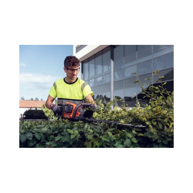 Husqvarna 522iHD75 to dobrze wyważone, lekkie nożyce do żywopłotu z akumulatorem 36 V do profesjonalnego użytku w pełnym wymiarze godzin. Pod względem mocy odpowiednik spalinowych nożyc do żywopłotu.<br />Te wydajne, bezprzewodowe nożyce do żywopłotu doskonale nadają się do częstszego przycinania. Wyposażone są w szybkoobrotową przekładnię oraz dwustronną listwę tnącą o długości 75 cm z ostrymi nożami do przycinania, szlifowanymi z trzech stron. Umieść akumulator w produkcie, aby uzyskać doskonałą bezprzewodową manewrowość lub zmaksymalizuj czas pracy, używając specjalnego adaptera do podłączenia do akumulatora plecakowego. Akumulator i ładowarka nie są dołączone.