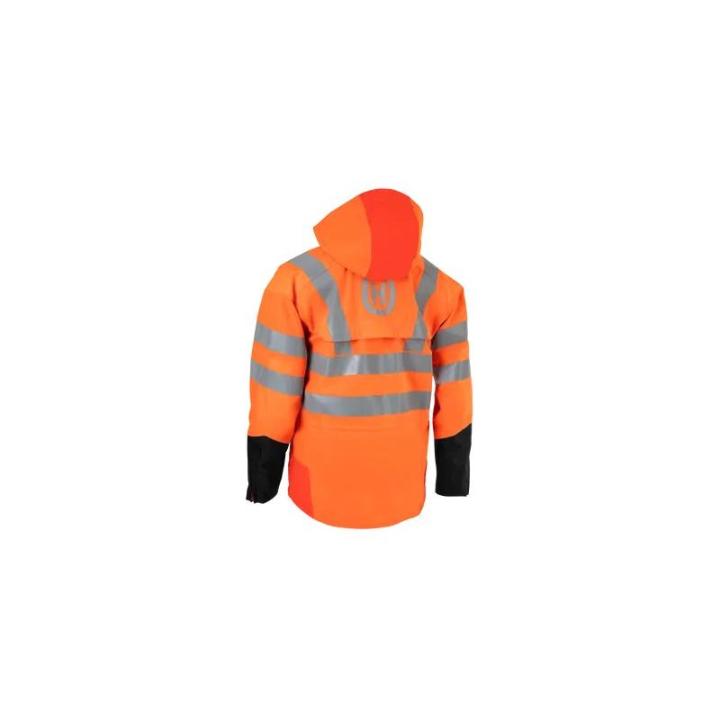 Wysokiej jakości kurtka przeciwdeszczowa z dodatkowym wzmocnieniem w miejscach najbardzij narażonych. Kurtka jest wodoodporna, ale oddychająca dzięki technologii z laminatem i klejonymi szwami.
