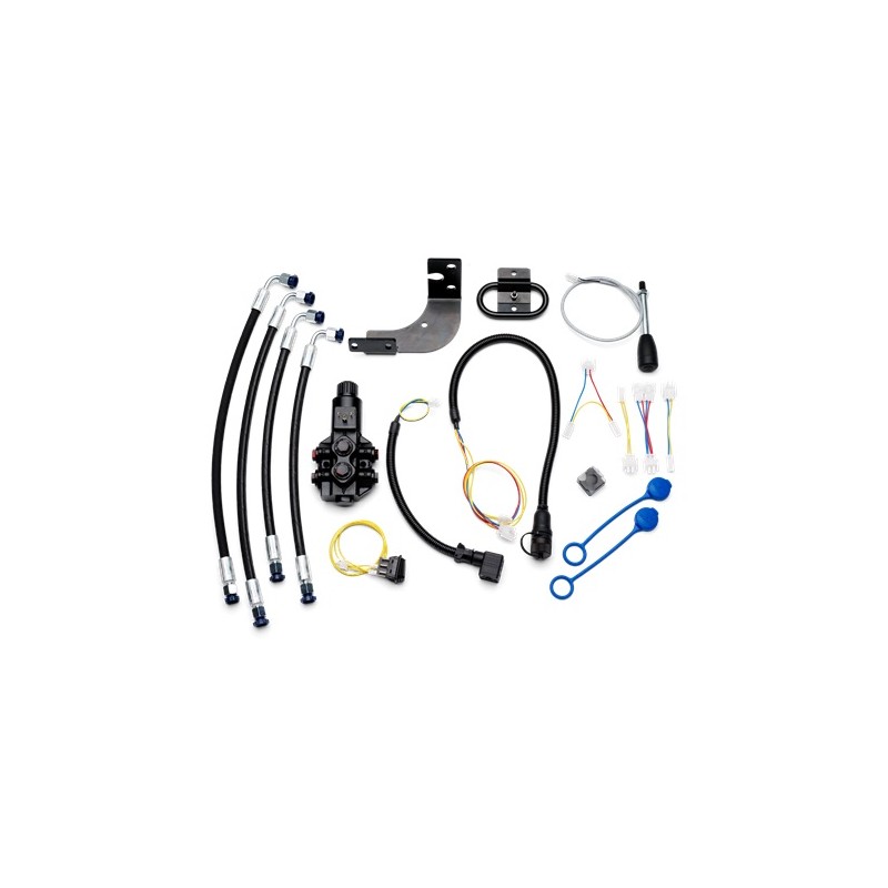 Zestaw jest niezbędny przy przystosowywaniu osprzętu mocowanego z przodu do funkcji hydraulicznych. Zawiera dwa przewody hydrauliczne ze złączkami, zawór elektryczny, przełącznik i wspornik mocujący.