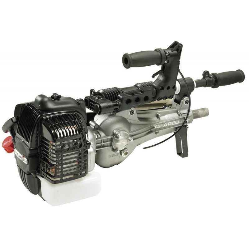 niezawodny silnik dwusuwowy Cifarelli C5 o mocy 2,3 KM. Wyposażona w ergonomiczne pasy na ramiona oraz specjalną poduszkę na plecy które sprawiają, że praca otrząsarką Cifarelli staje się przyjemnością. Dźwignia gazu z przyciskiem STOP pozwalająca na wyłączenie maszyny bez zdejmowania.
