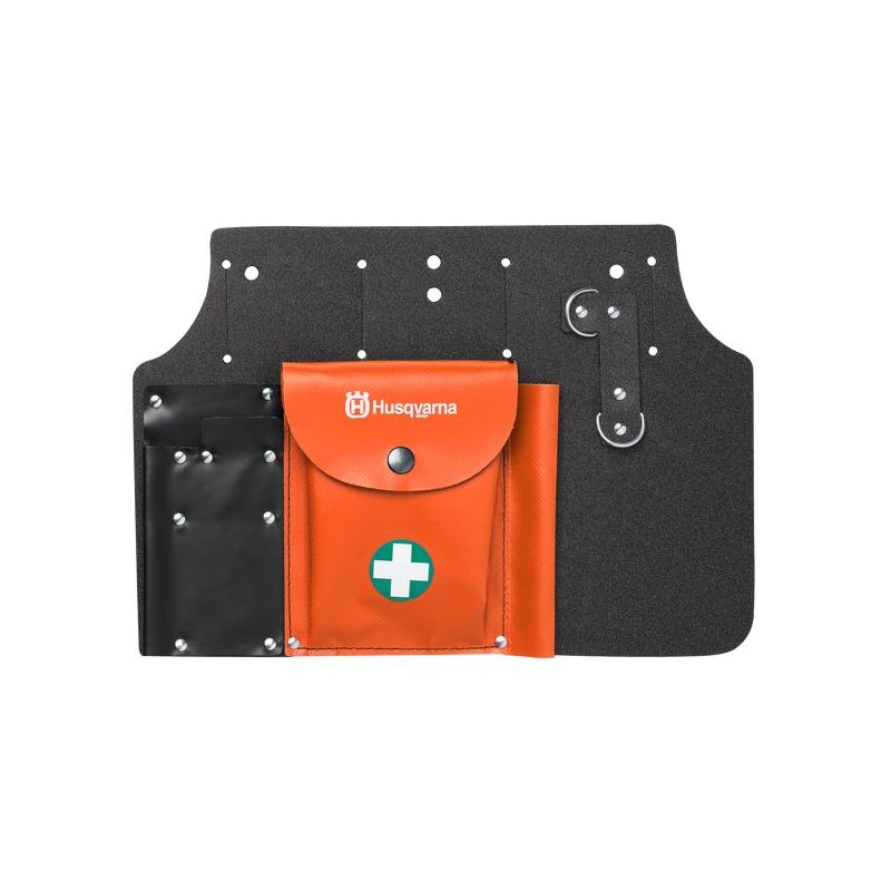 Z dużą kieszenią na zestaw pierwszej pomocy, zapasowy łańcuch oraz narzędzie do gaźnika. Futerał na pilnik, przymiar, klucz kombinowany i taśmę mierniczą. 10 sztuk w opakowaniu.